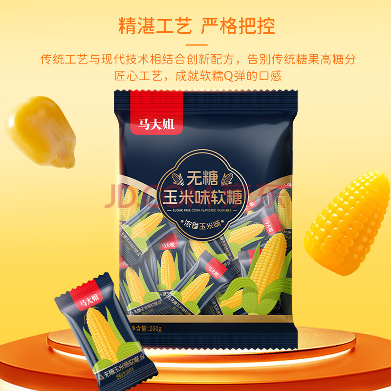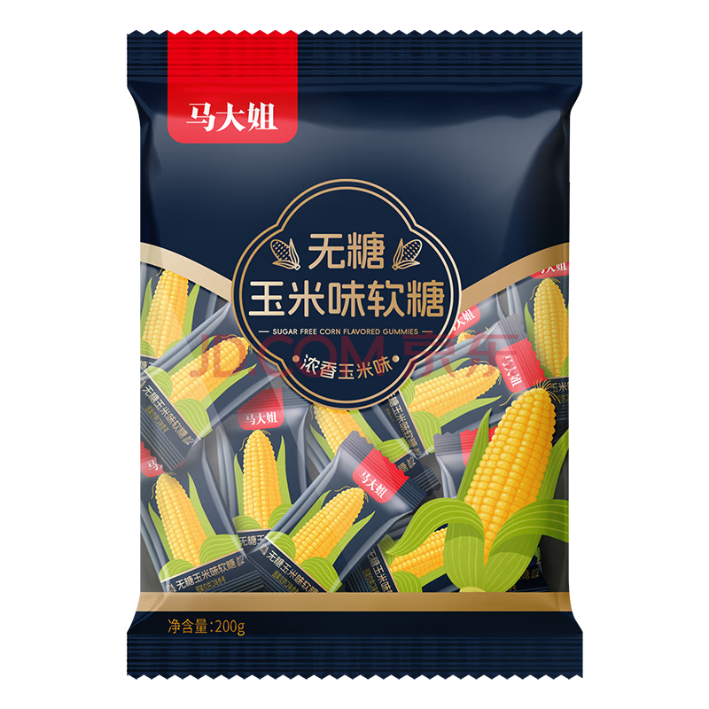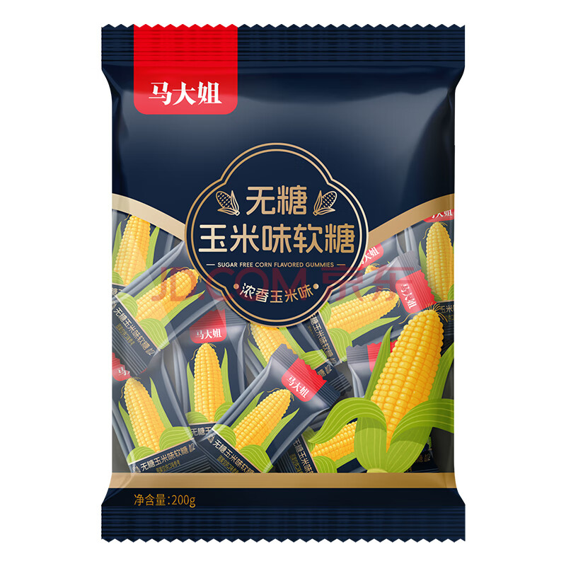 > 马大姐 无糖玉米味软糖 200g/袋 不添加蔗糖 果味零食糖果 40年大品牌