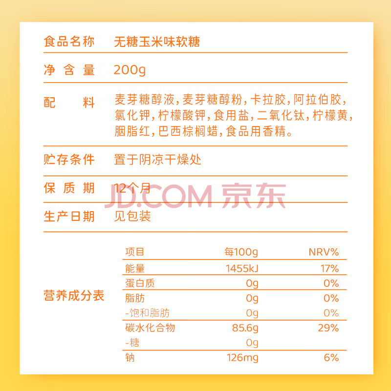 商品名称:马大姐 无糖玉米味软糖 200g/袋 不添加蔗糖 果味零食糖果 40年大品牌