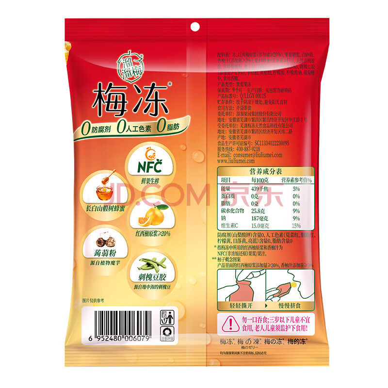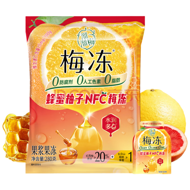 商品名称:溜溜梅 果冻天然梅冻 蜂蜜柚子 280g NFC果浆果汁鲜榨 0脂肪 0防腐剂