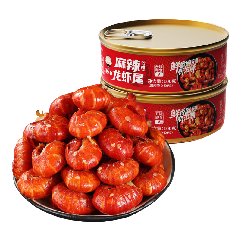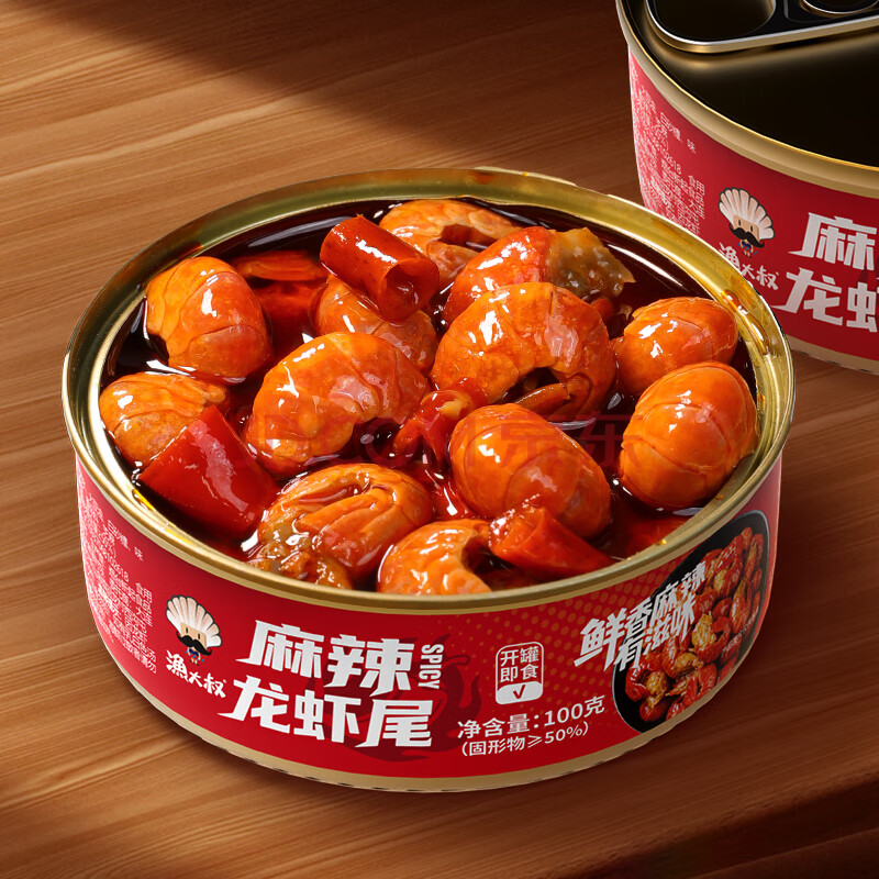 商品名称:渔大叔 麻辣龙虾尾罐头100g即食捞汁小海鲜休闲零食下饭菜