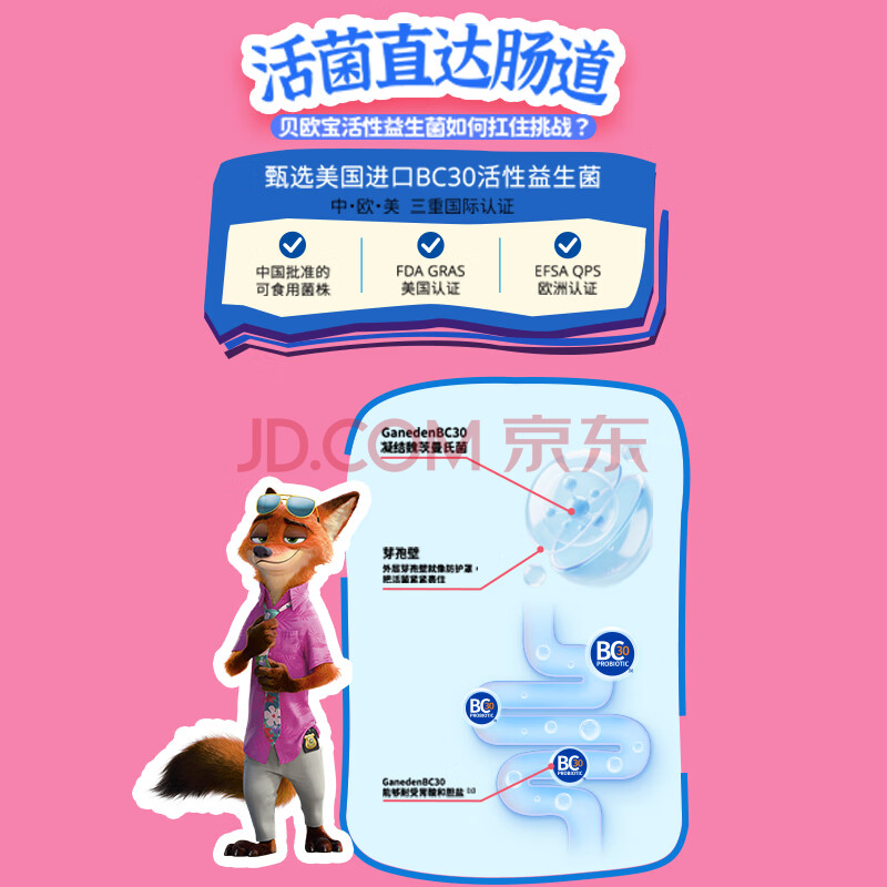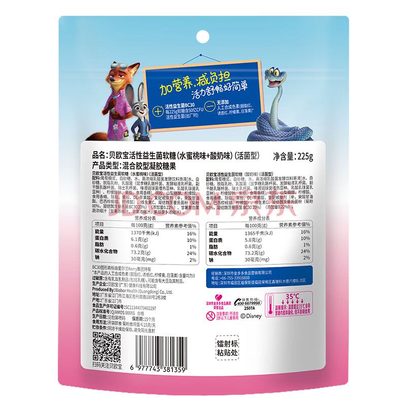 商品名称:贝欧宝活性益生菌软糖 225g 水蜜桃+酸奶味 疯狂动物城 儿童零食 糖果