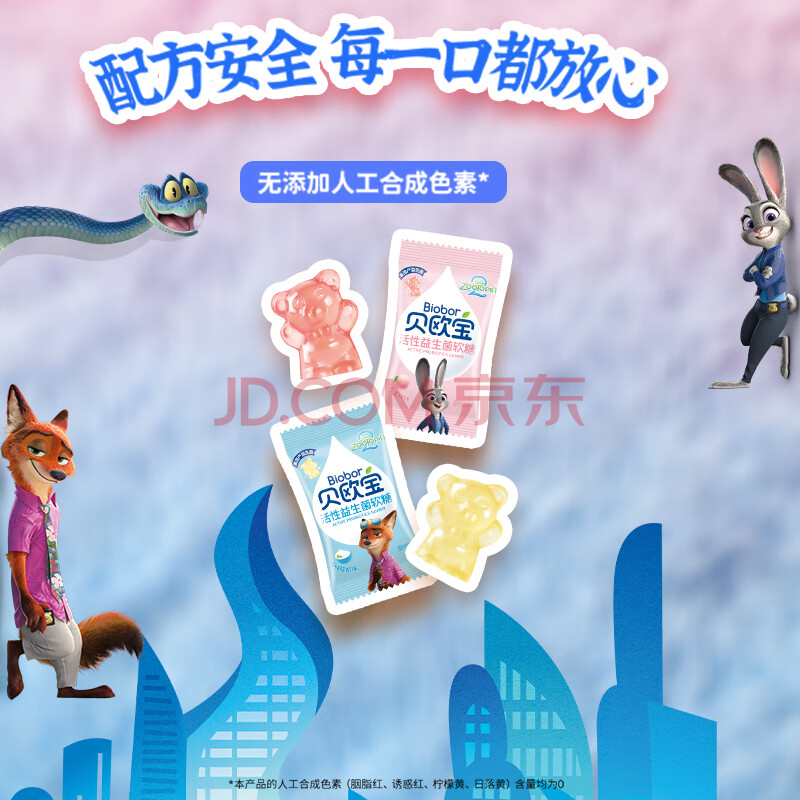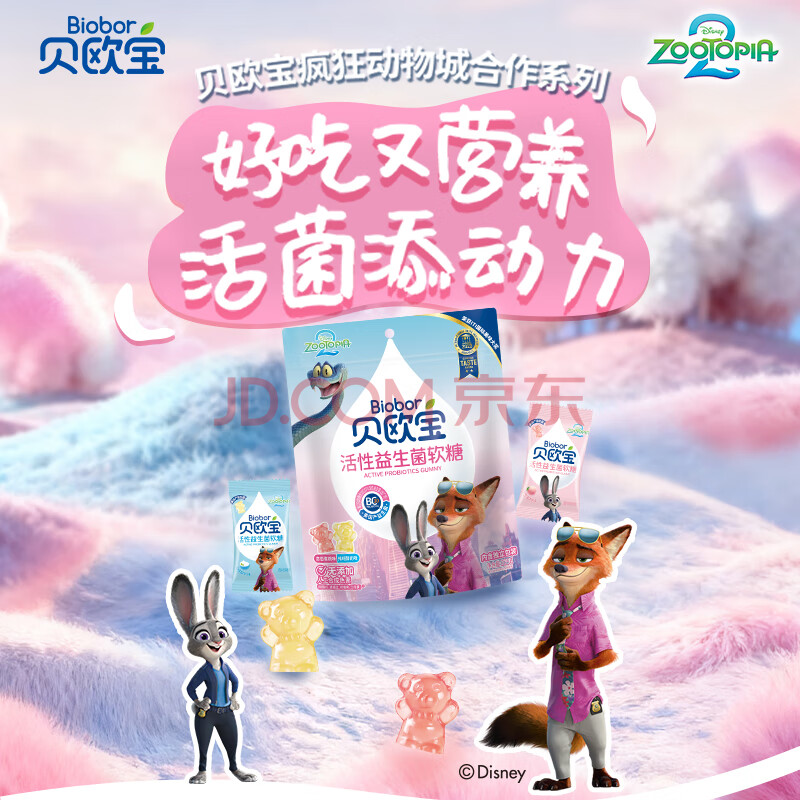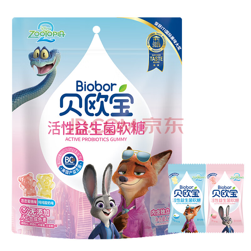 > 贝欧宝活性益生菌软糖 225g 水蜜桃+酸奶味 疯狂动物城 儿童零食 糖果