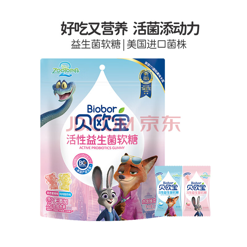 贝欧宝活性益生菌软糖 225g 水蜜桃+酸奶味 疯狂动物城 儿童零食 糖果