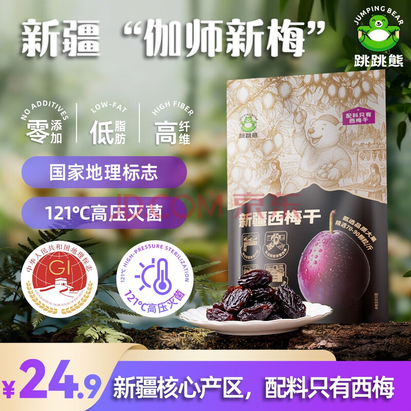 商品名称:跳跳熊新疆伽师0添加西梅干300g 超大颗粒有核低脂健康清肠解馋孕妇零食