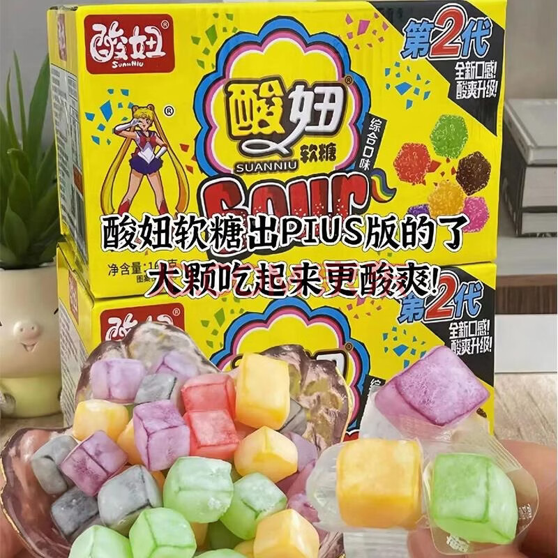 酸妞(SUANNIU)二代软糖大颗混合口味 160g20包 酸甜儿童零食怀旧糖果礼物