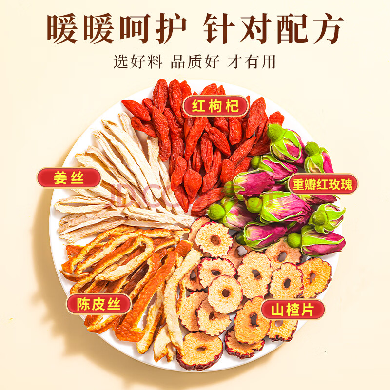 商品名称:朕皇北京同仁堂姜枣茶姜茶送女友大姨妈补气血经期玫瑰红枣枸杞茶150g