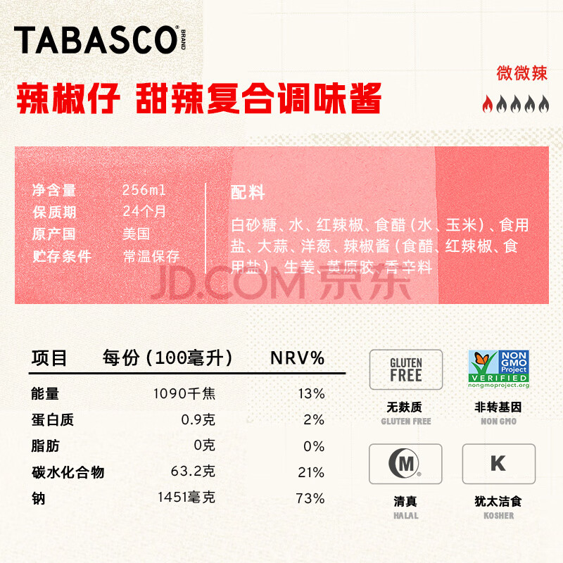商品名称:辣椒仔(Tabasco)甜辣酱汁风味256ml 美国进口