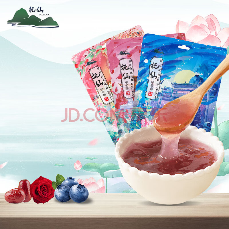 商品名称:抚仙云南藕粉125g*3蓝莓红枣玫瑰即食速溶孕妇老人营养早餐澄江藕粉