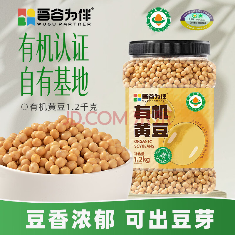 商品名称:吾谷为伴有机黄豆2.4斤可发豆芽 打豆浆 东北大豆 粗粮杂粮 罐装