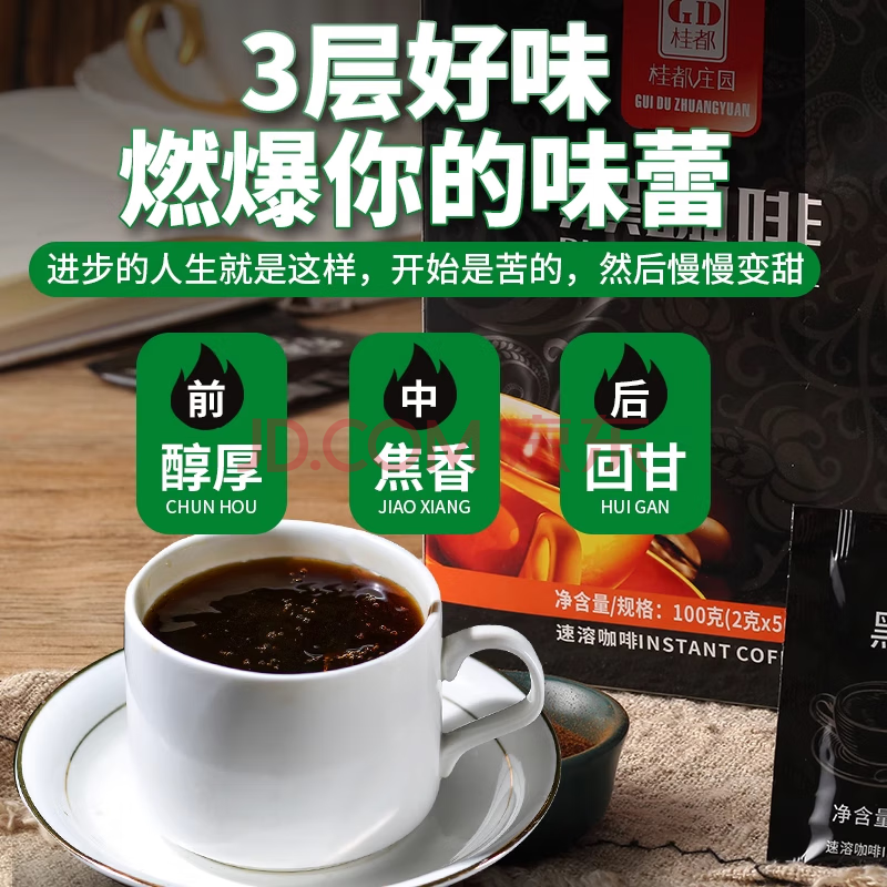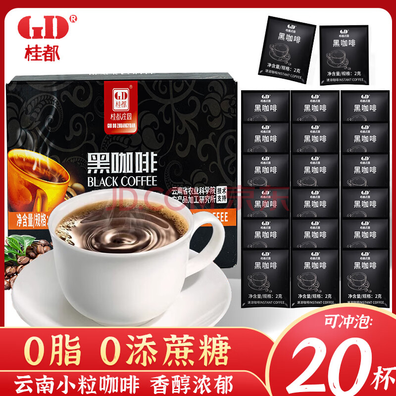 > 桂都农科院黑咖啡2g*20杯云南速溶咖啡美式咖啡粉运动健身燃减