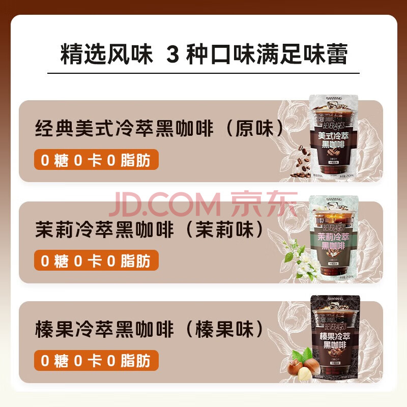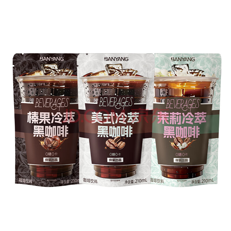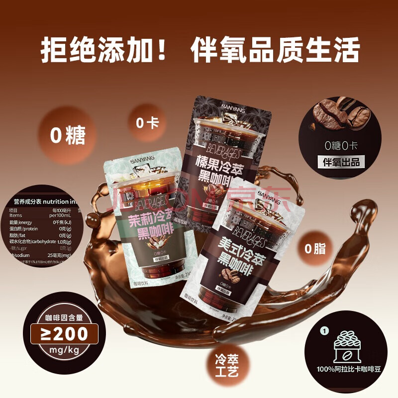 商品名称:伴氧冷萃黑咖即饮口袋咖啡3袋(美式茉莉榛果口味210ml/袋)0糖0脂0卡