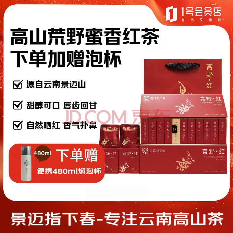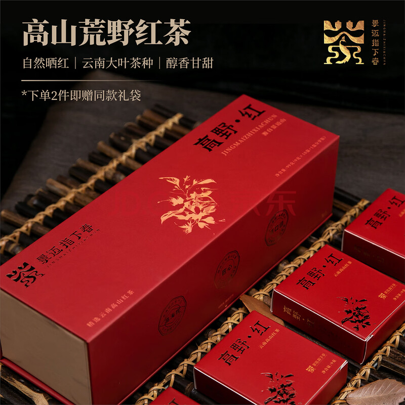 > 景迈指下春茶叶高山茶 云南景迈山高野红茶紧压茶叶礼盒 99g*2 赠闷泡杯