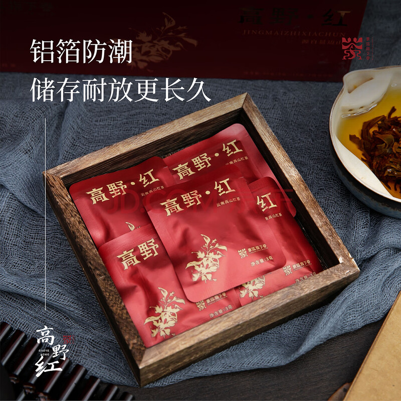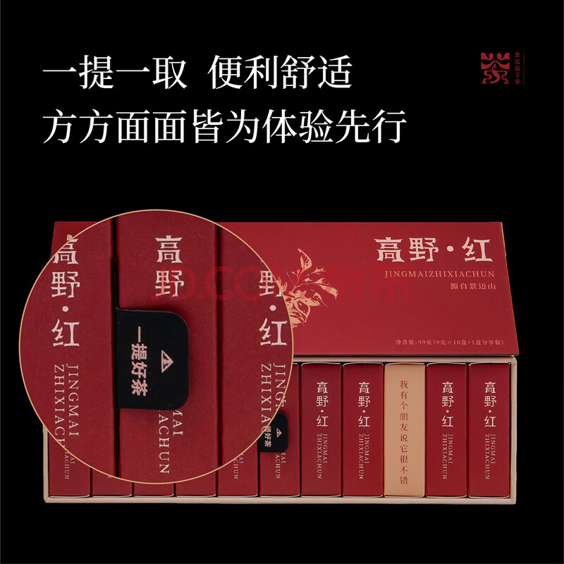 商品名称:景迈指下春茶叶高山茶 云南景迈山高野红茶紧压茶叶礼盒 99g*2 赠闷泡杯