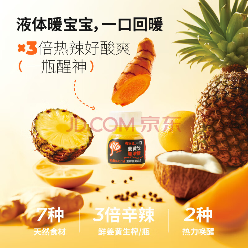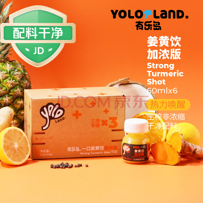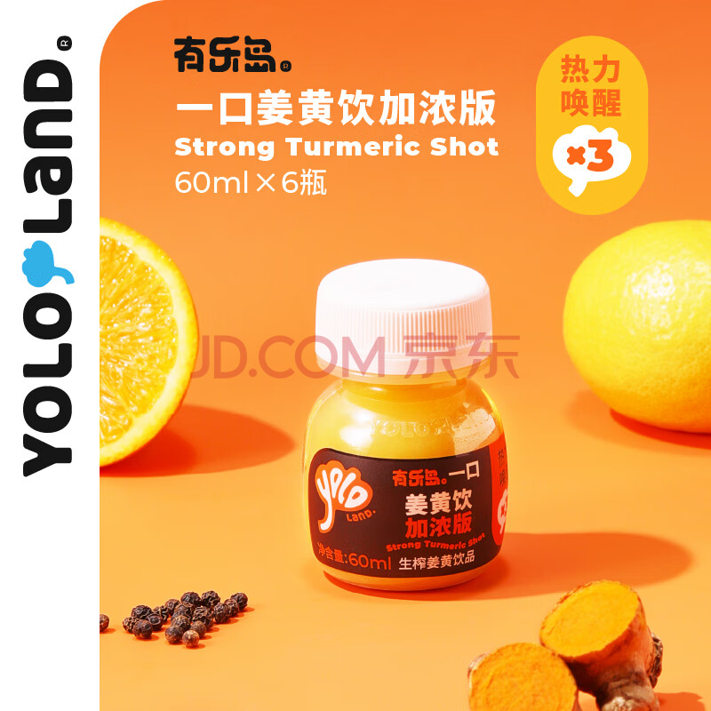 商品名称:有乐岛一口姜黄饮加浓版60ml*6瓶姜黄饮料鲜姜黄生榨非浓缩还原热力唤醒