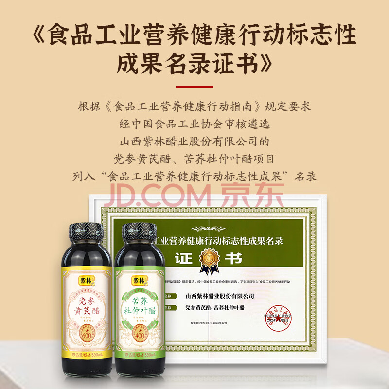 商品名称:紫林3.5度苦荞杜仲叶醋350ml食药相宜0添加酿造醋兑水/直接喝山西特产