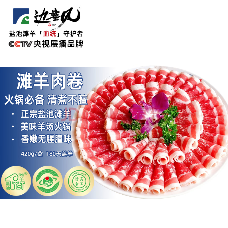 商品名称:边塞风宁夏盐池滩羊原切羔羊肉卷420g 火锅食材生鲜羊肉片 源头直发