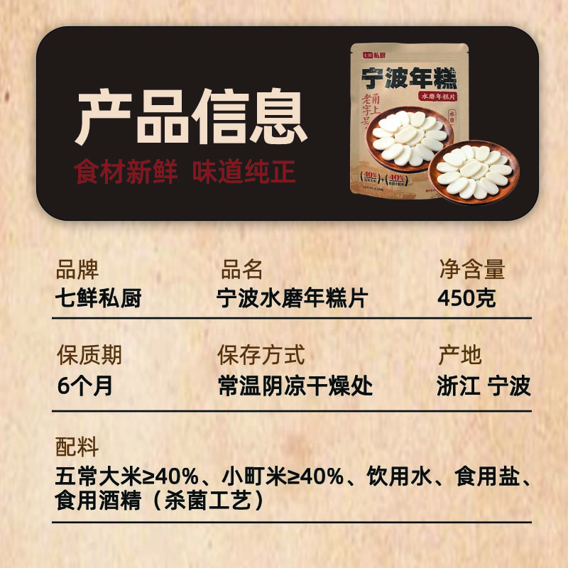 > 七鲜私厨 宁波水磨年糕片450g 25年五常大米火锅食材主食半成品早餐