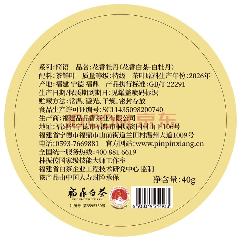 商品名称:品品香福鼎白茶【源头直发】2026新茶特级花香白茶白牡丹茶叶40g春茶