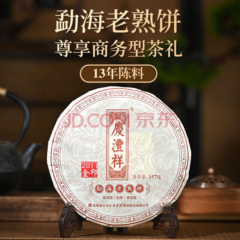 商品名称:七彩雲南庆沣祥 茶叶 普洱茶熟茶 2011年金印勐海老熟饼357g 单饼