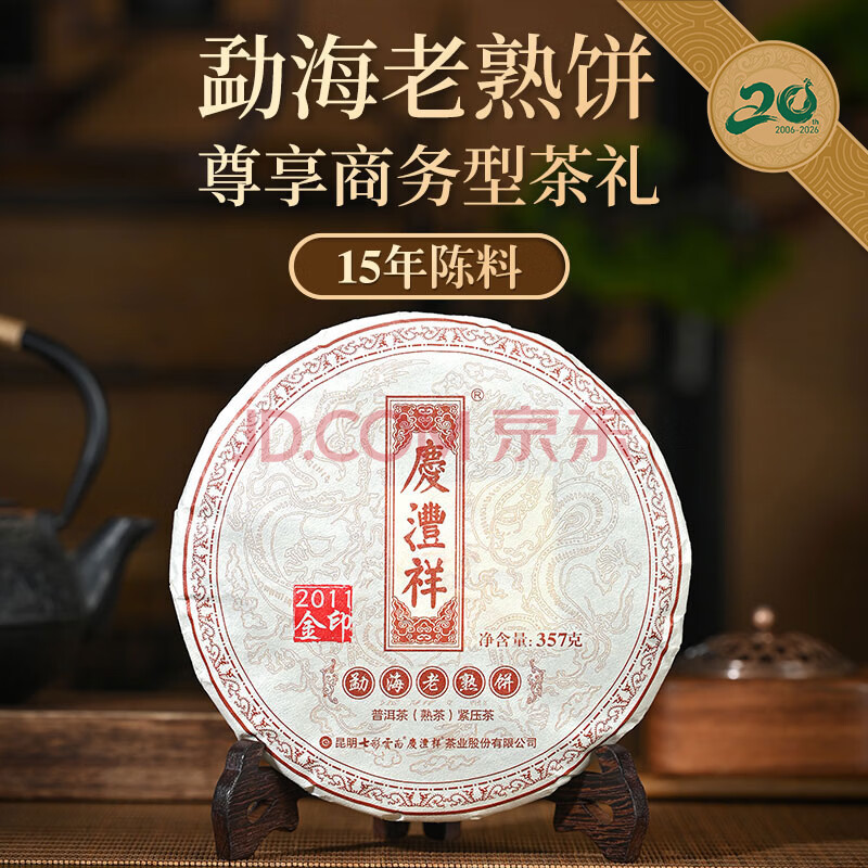 > 七彩雲南庆沣祥 茶叶 普洱茶熟茶 2011年金印勐海老熟饼357g 单饼
