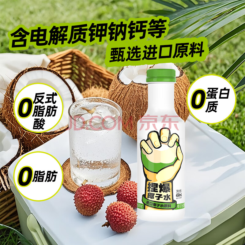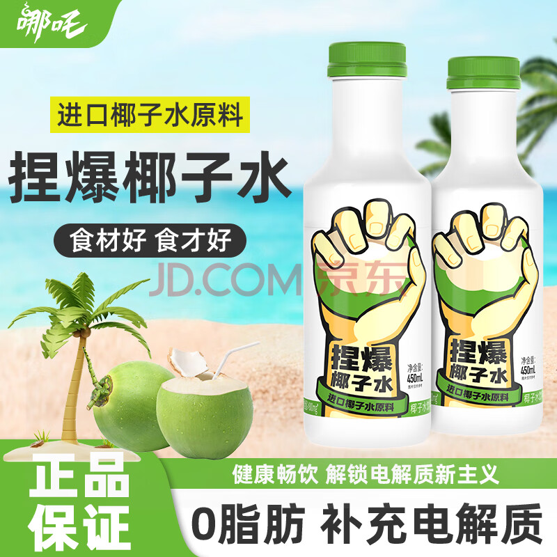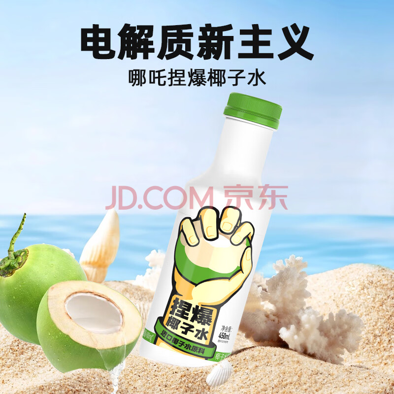 商品名称:哪吒捏爆椰子水450ml*6瓶0脂肪椰汁富含天然电解质饮料品进口原料果汁