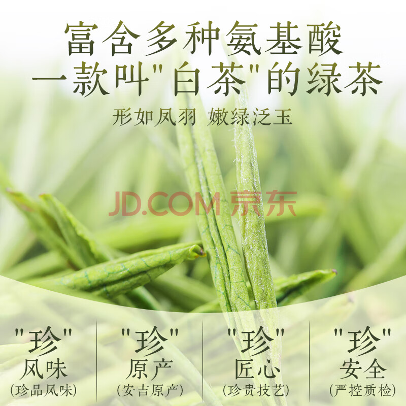> 狮峰牌绿茶安吉原产地白茶茶叶 明前特级60g独立小包袋装自己喝