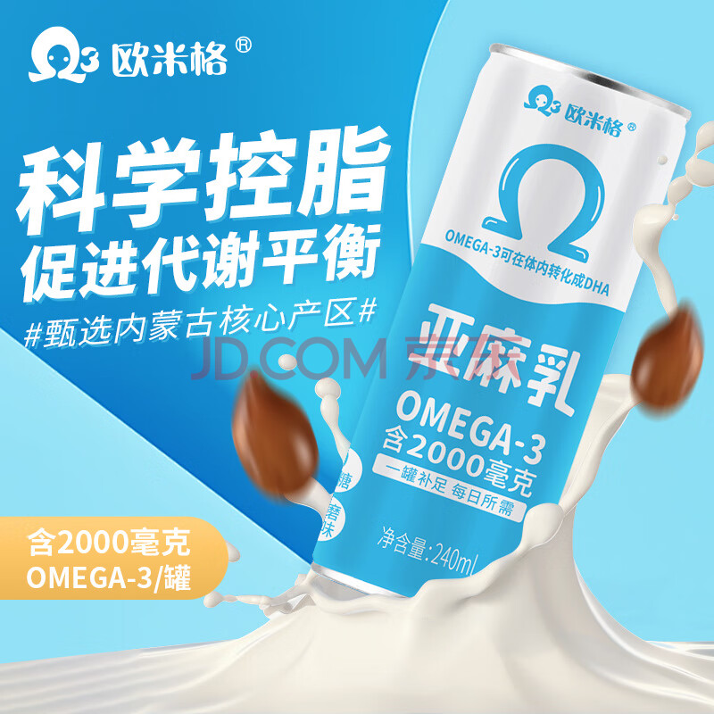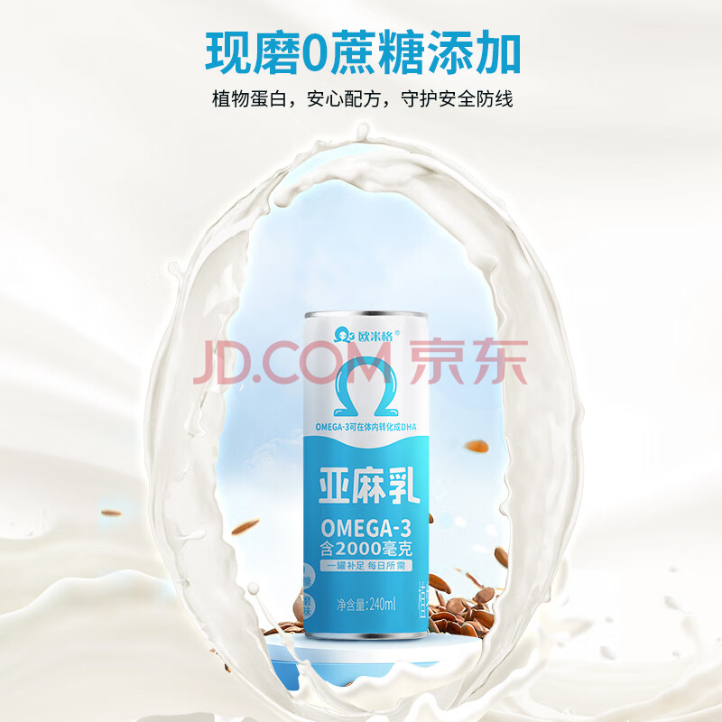 商品名称:欧米格亚麻乳240ml*1罐 0蔗糖 原味植物蛋白饮料 早餐奶