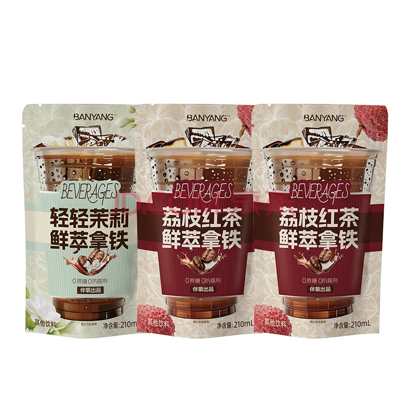 商品名称:伴氧鲜萃拿铁咖啡 0糖0脂0卡 210ml*3袋 口袋即饮咖啡下午茶
