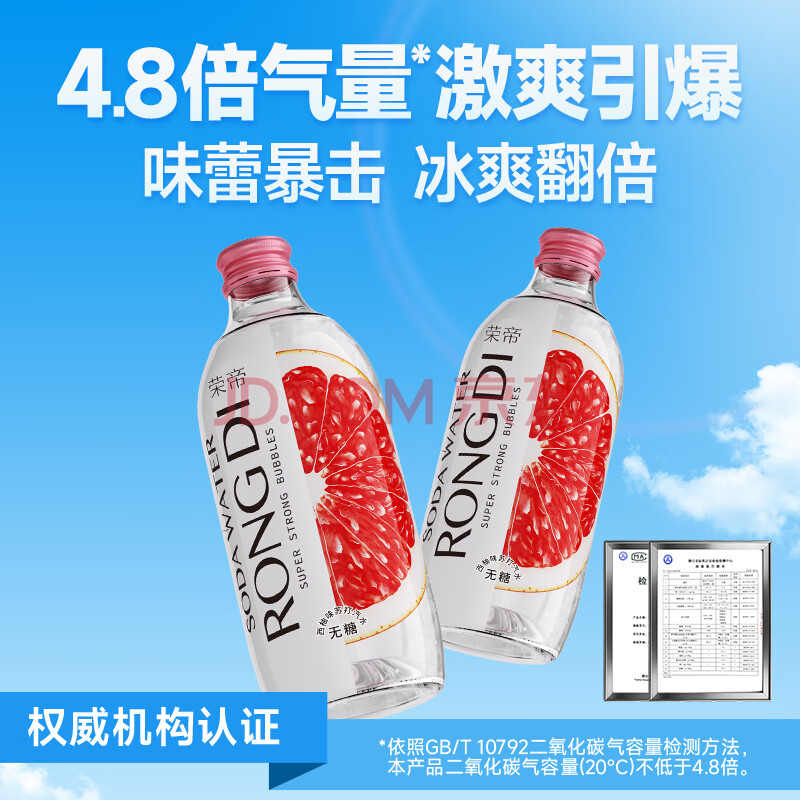 商品名称:荣帝 苏打水西柚味325ml*12瓶/整箱 无糖 气泡水 饮料 0糖0脂0卡 旋盖