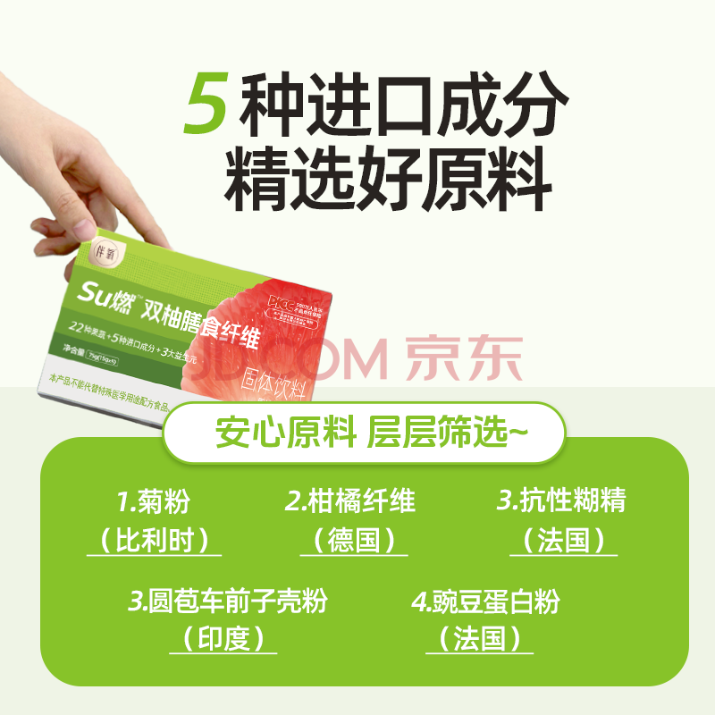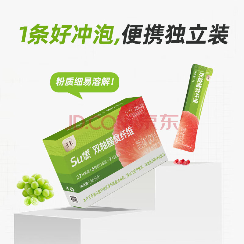 商品名称:伴氧Su燃双柚膳食纤维果蔬粉菊粉1盒 0脂肪 早餐冲饮代餐粉