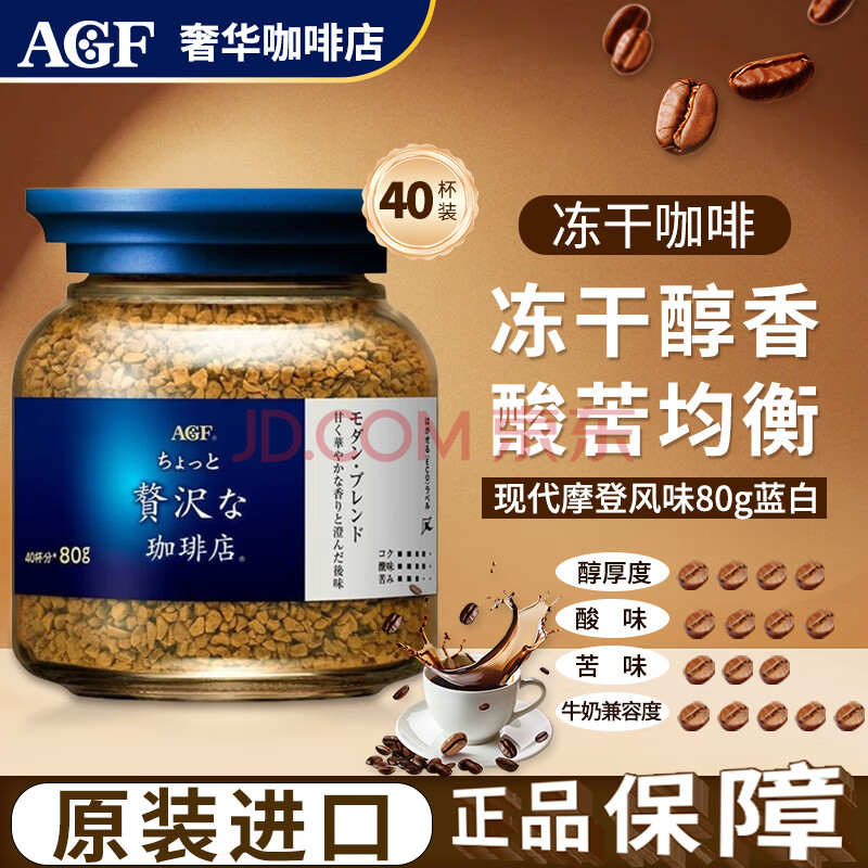 > AGF蓝白罐冻干黑咖啡80g现代摩登风味 日本原装进口