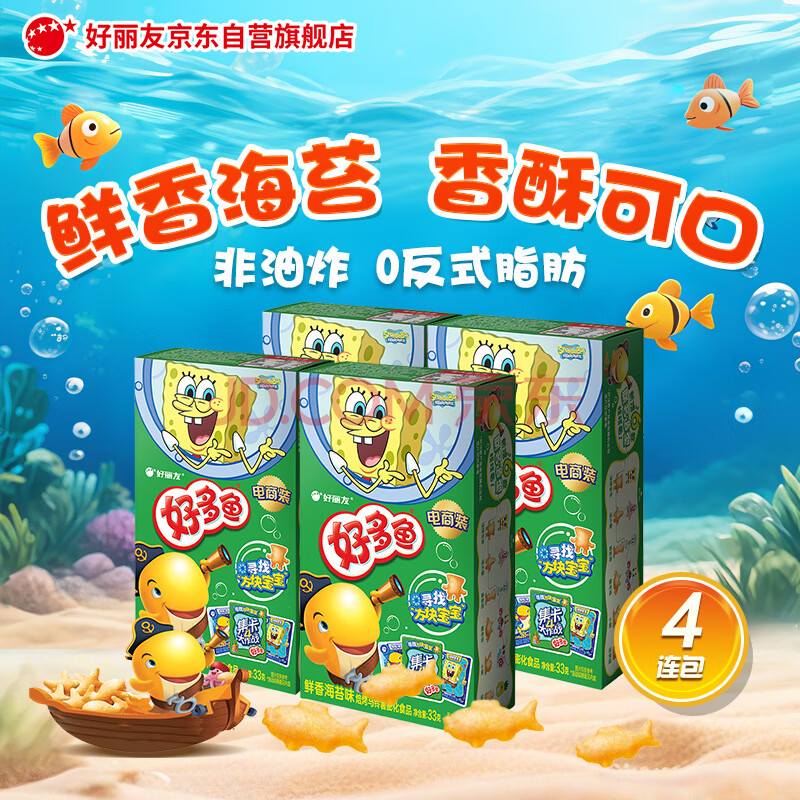 商品名称:好丽友(orion)好多鱼鲜香海苔味33g4连包 休闲零食膨化食品解馋小吃