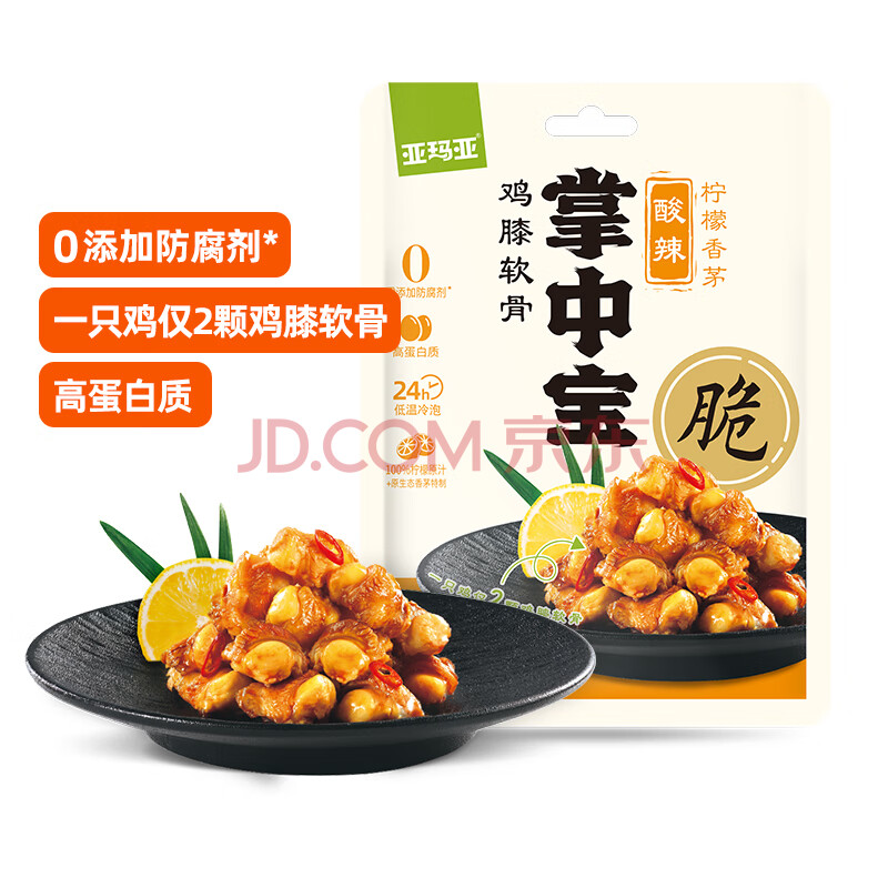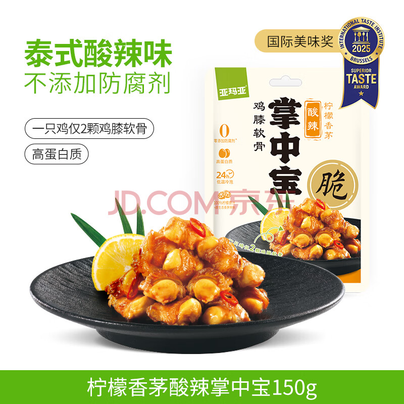 商品名称:亚玛亚 掌中宝 柠檬香茅酸辣味鸡脆骨鸡肉休闲零食0添加防腐剂 150g