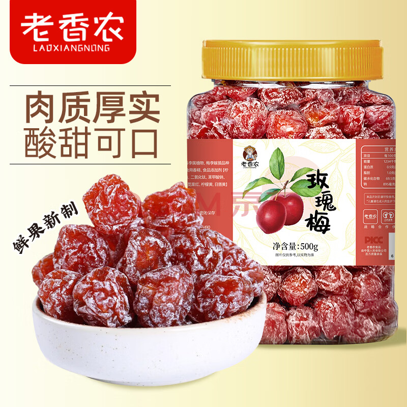 商品名称:老香农酸甜爽口玫瑰梅500g罐装小吃情人梅蜜饯果干果脯办公休闲小零食