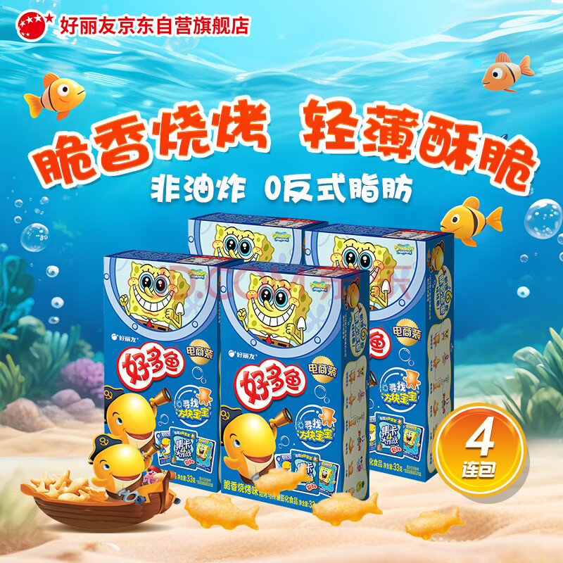 商品名称:好丽友(orion)好多鱼脆香烧烤味33g4连包 休闲零食膨化食品解馋小吃