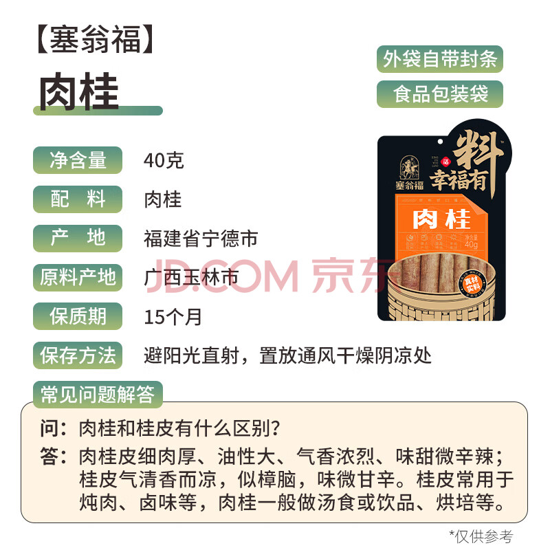 商品名称:塞翁福 肉桂40g 香辛料 广西玉林桂皮清香肉桂调料 炖肉卤料火锅料