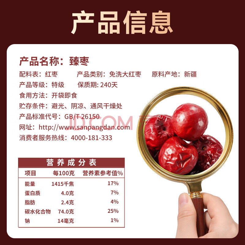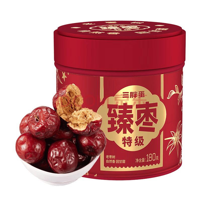 商品名称:三胖蛋特级红枣180g罐装 新疆大枣免洗即食坚果 蜜枣煲汤孕妇 休闲零食