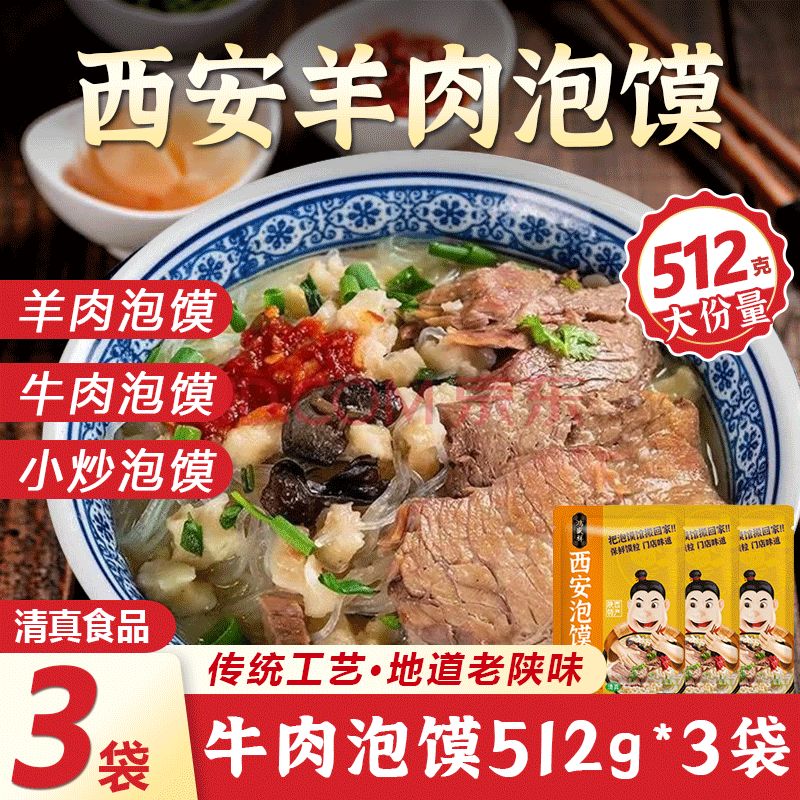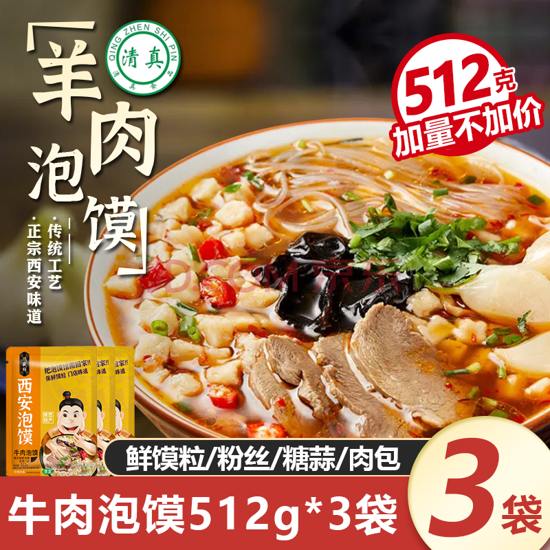 商品名称:鸿盛祥清真牛肉泡馍512g*3袋加量装正宗陕西西安羊肉泡馍特产方便煮馍