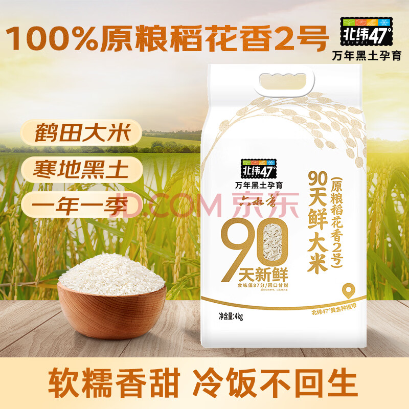 商品名称:北纬47度六水香90天鲜原粮稻花香2号4KG/8斤东北大米长粒年货送礼