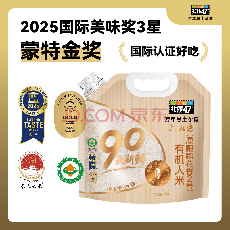 商品名称:北纬47度25年新米【有机】90天鲜原粮稻花香2号4斤东北大米长粒年货送礼