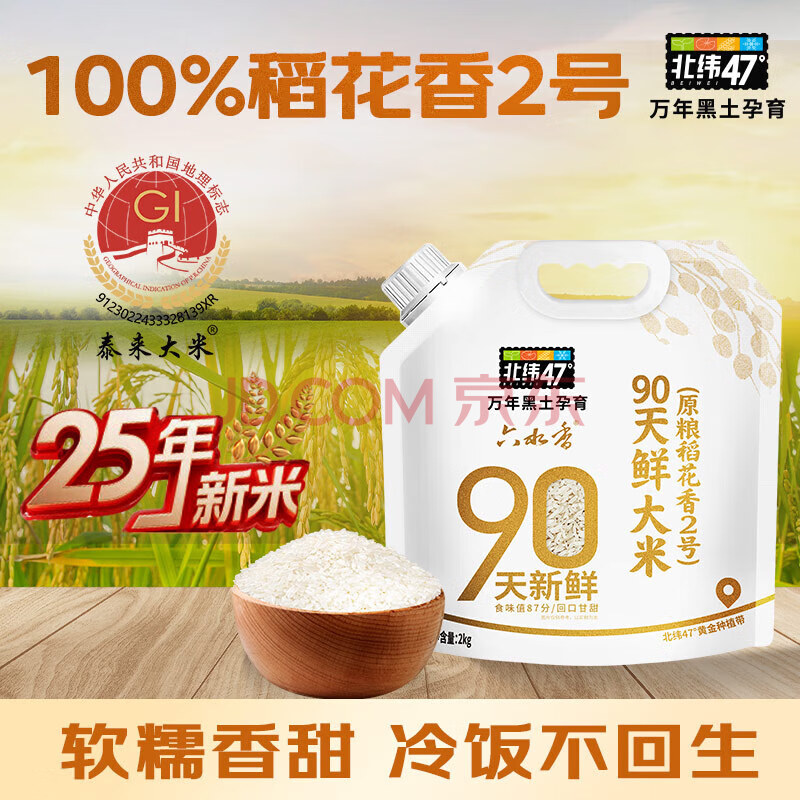 商品名称:北纬47度25年新米六水香90天鲜原粮稻花香2号2KG/4斤东北大米长粒年货送礼