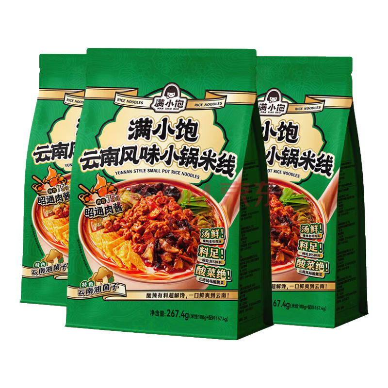> 满小饱云南小锅米线干粉267.4g*3包 方便速食夜宵解馋