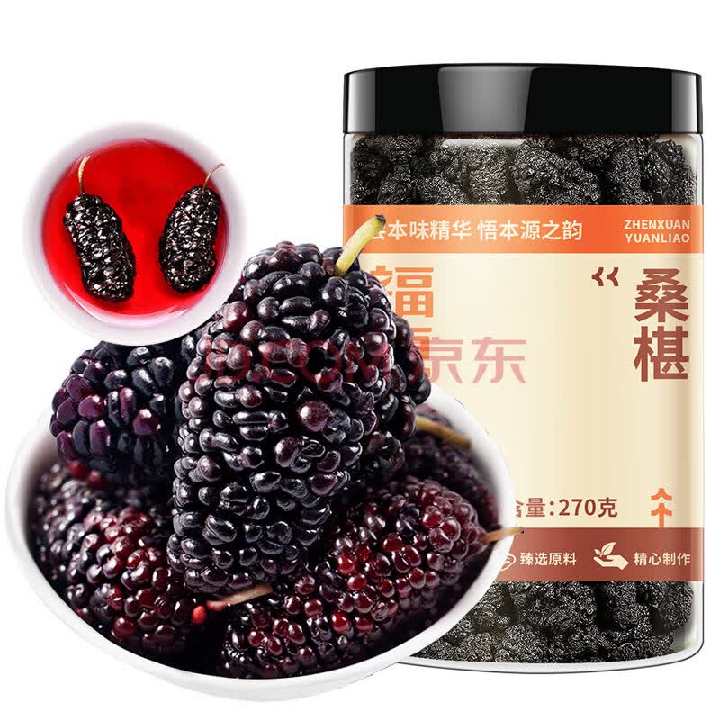 商品名称:福东海 精选桑葚干270g 无沙黑桑椹干即食泡水养生茶