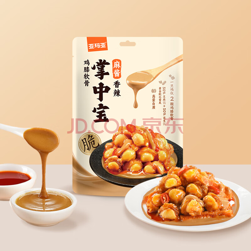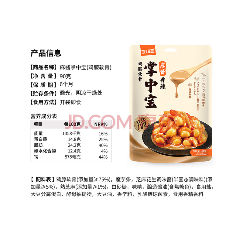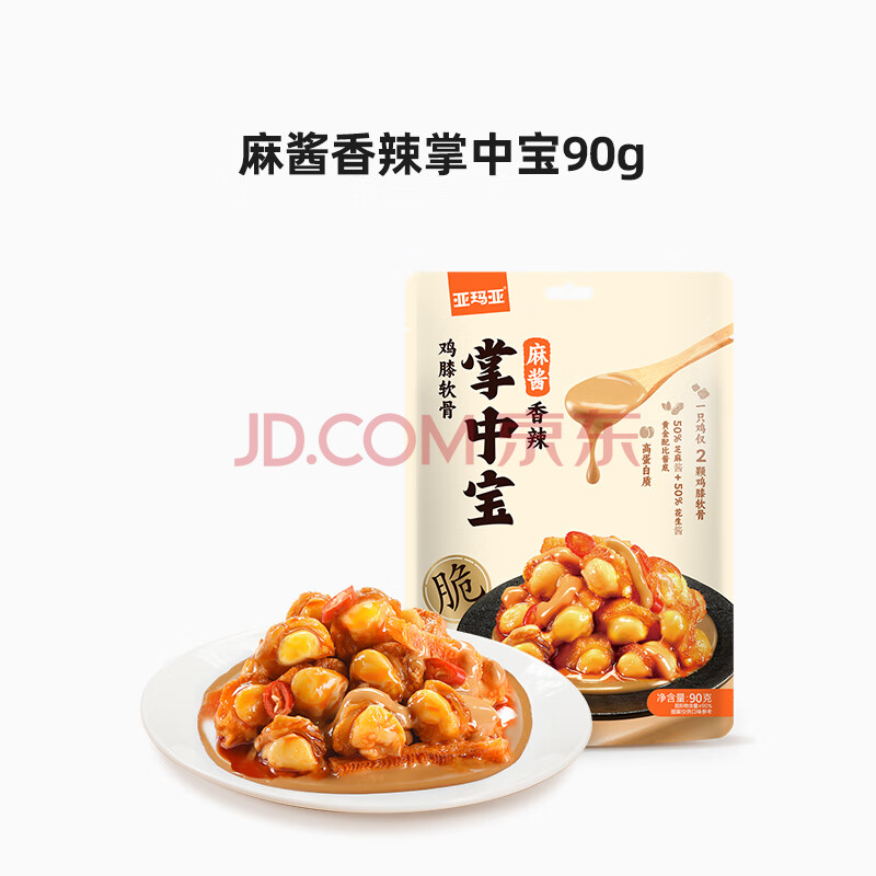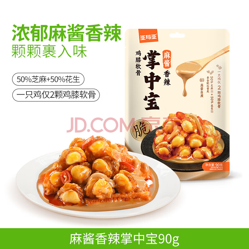 商品名称:亚玛亚掌中宝 麻酱香辣味90g 鸡膝软骨鸡脆骨即食鸡肉小零食