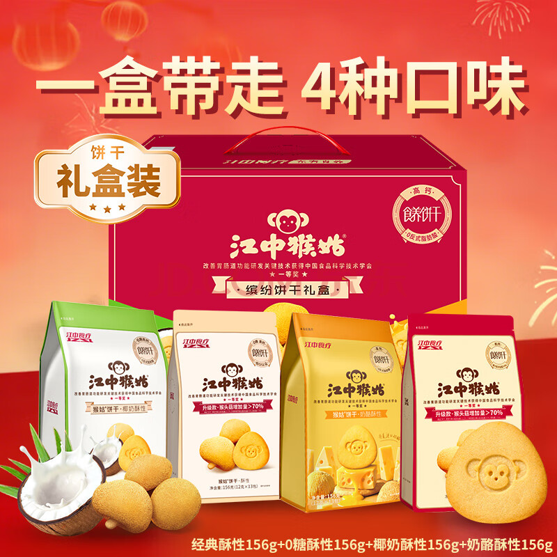 江中猴姑养胃缤纷酥性礼盒624g送礼4口味礼盒营养高钙早餐休闲零食团购