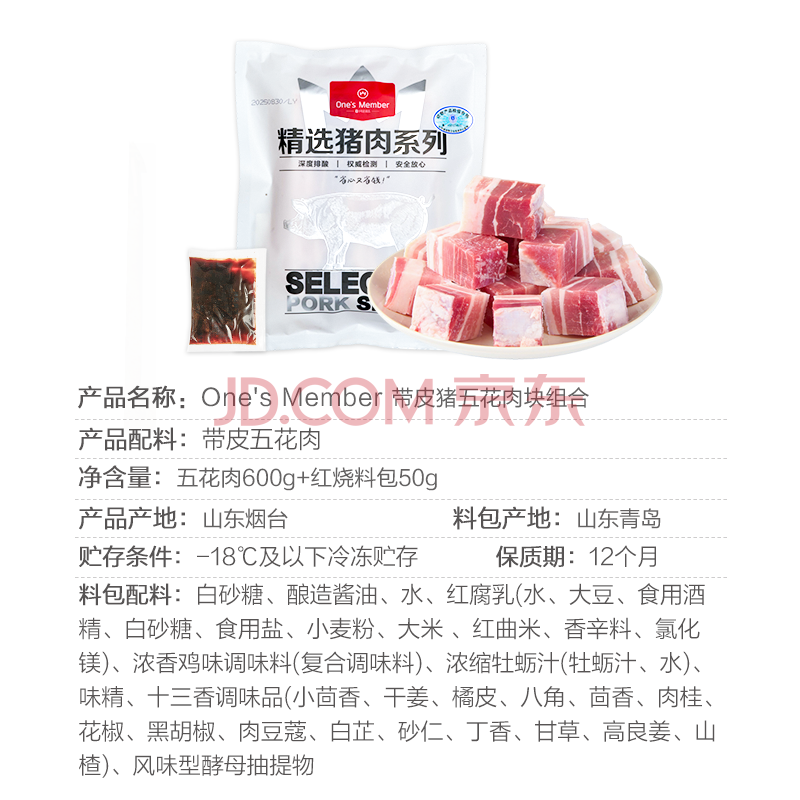 商品名称:1号会员店(One's Member)精品带皮猪五花肉 净重650g(含红烧料50g)猪肉生鲜红烧肉食材