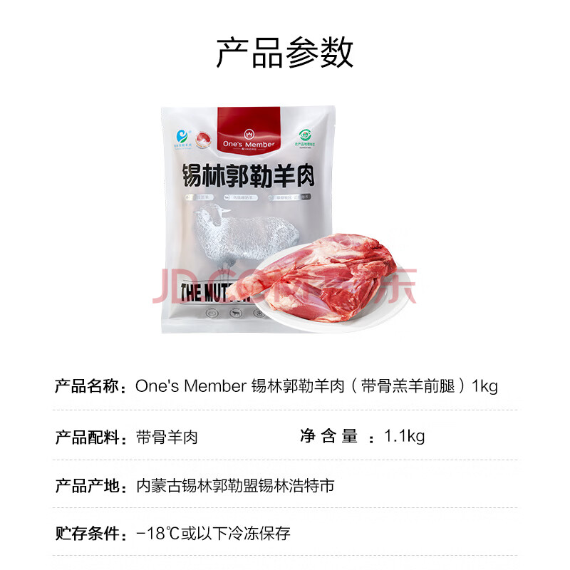 商品名称:1号会员店内蒙锡林郭勒散养带骨羔羊前腿净重2.2斤 纯正乌珠穆沁草地羊肉