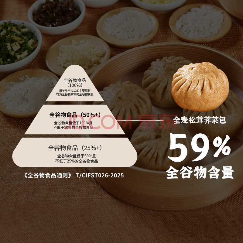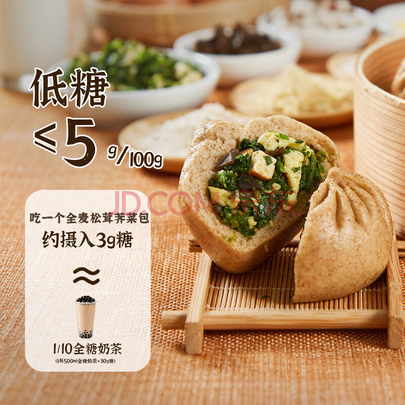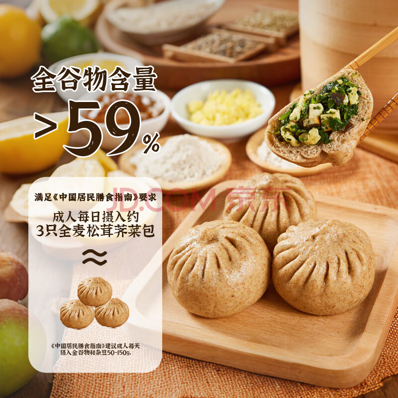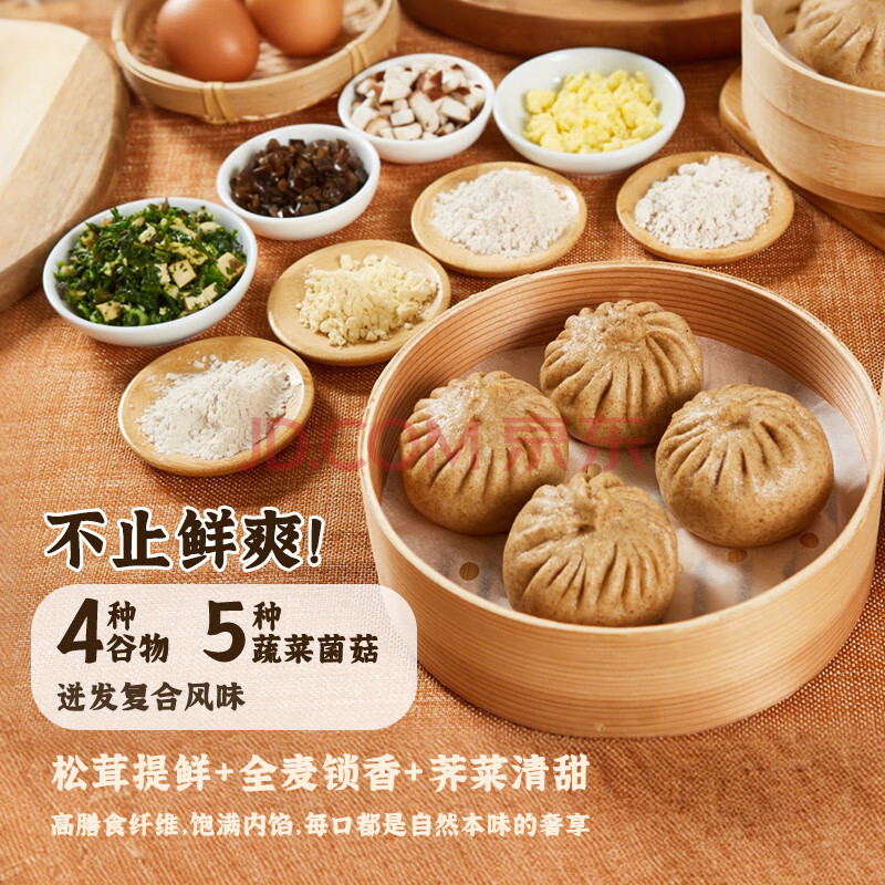 > 五六穗全麦松茸荠菜包 360g(6只)健康全谷物面点营养早餐膳食纤维