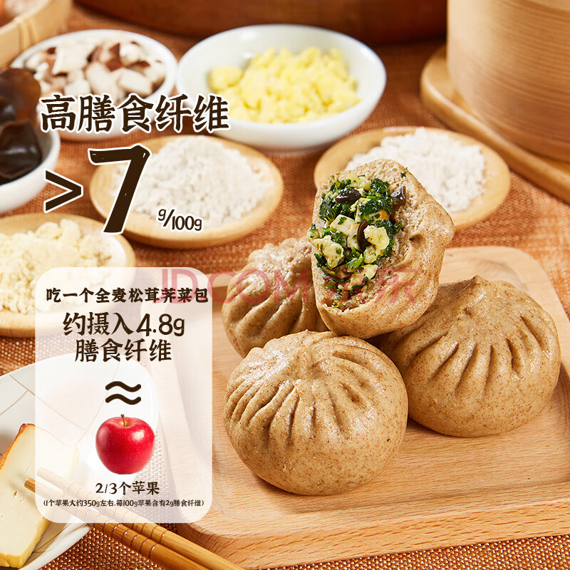 商品名称:五六穗全麦松茸荠菜包 360g(6只)健康全谷物面点营养早餐膳食纤维