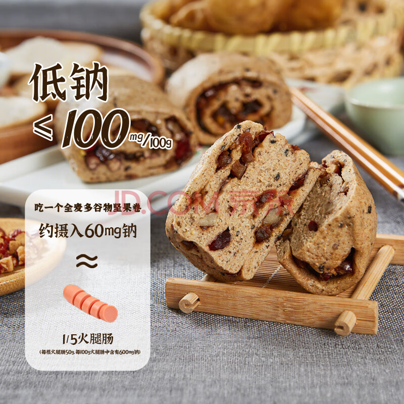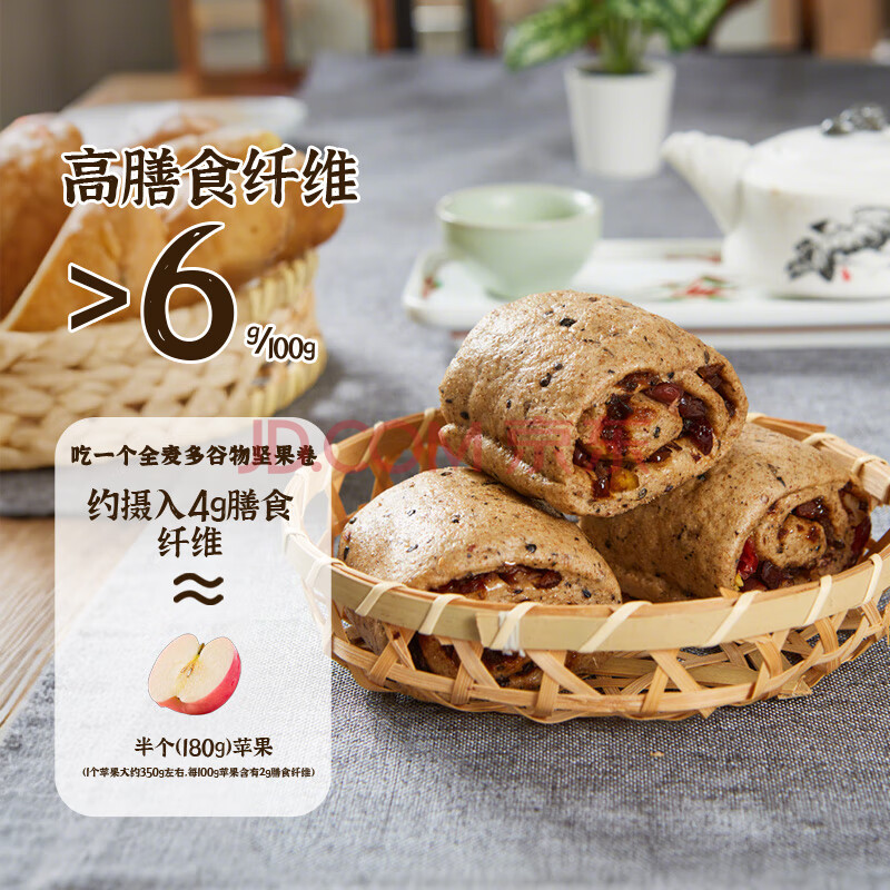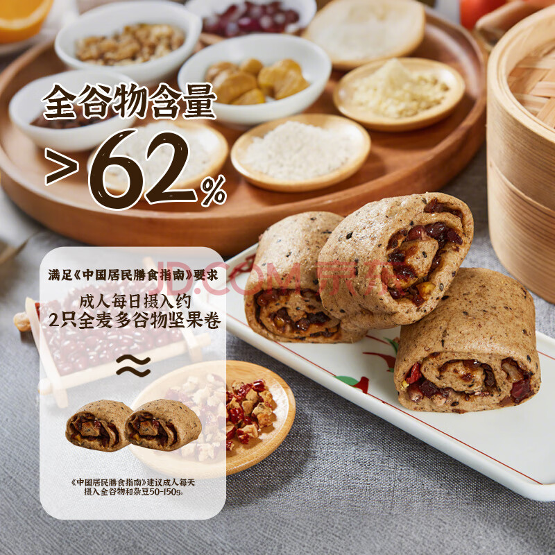 商品名称:五六穗全麦多谷物坚果卷 360g 6个装 早餐夜宵面点杂粮馒头花卷低脂速食